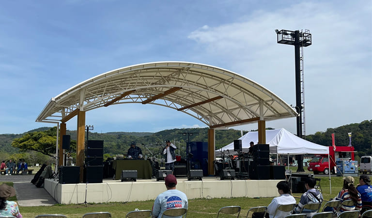 ステージでは音楽ライブが行われていて、会場にはたくさんの人が集まっていました。