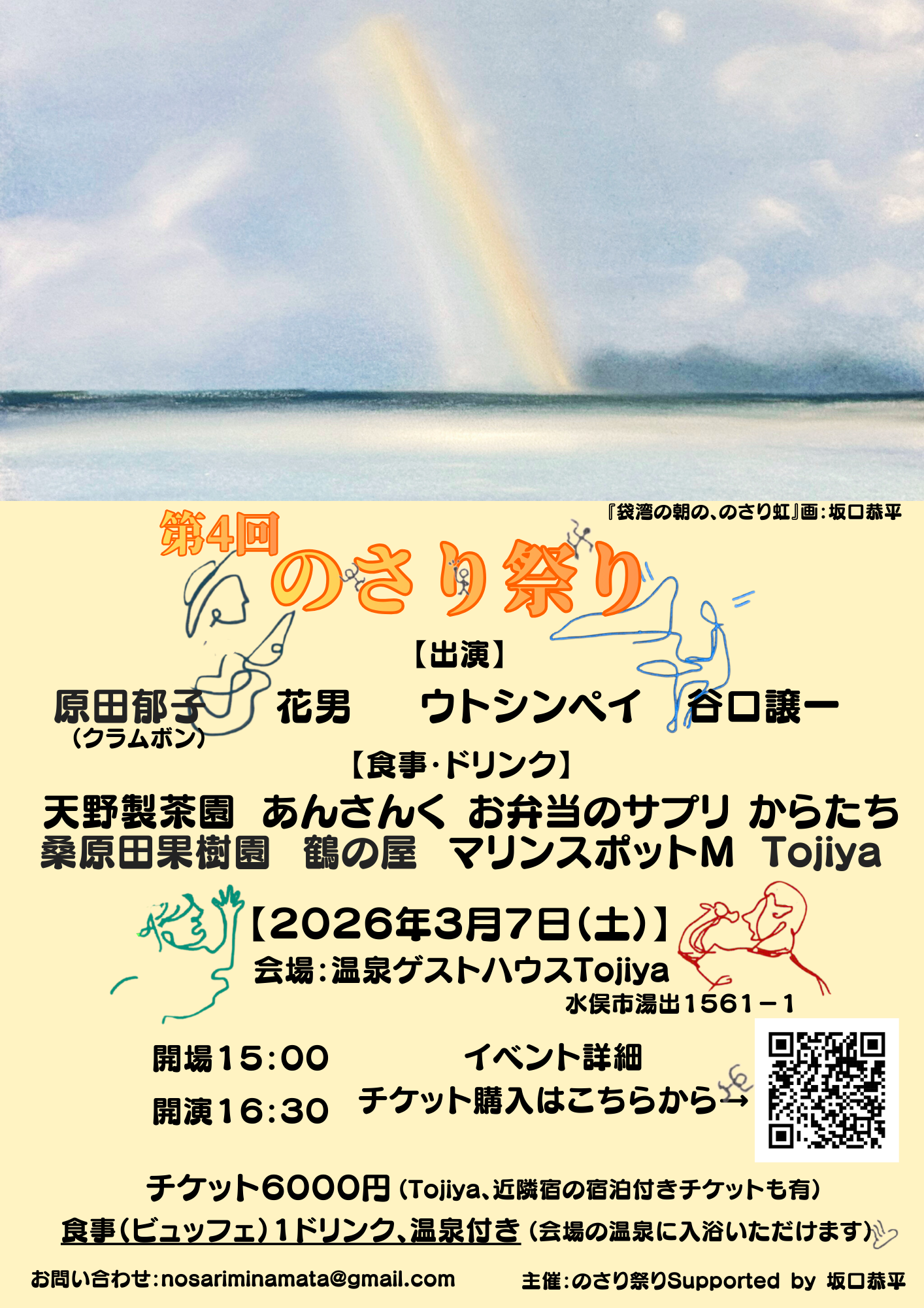 当日は豪華な出演者さんに加えて、水俣、芦北の食材を中心としたご飯やドリンクがいただけるそう!